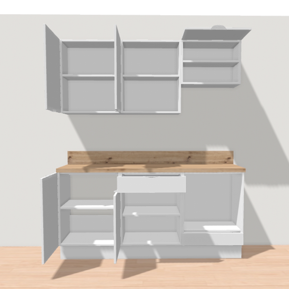 Le prix de cette cuisine ne comprend pas : la hotte, le micro-ondes, l'évier et le mitigeur. Vous pouvez ajouter ces produits à cette cuisine préconfigurée en parcourant nos différentes catégories d'équipement : Electroménager / Eviers et mitigeurs.