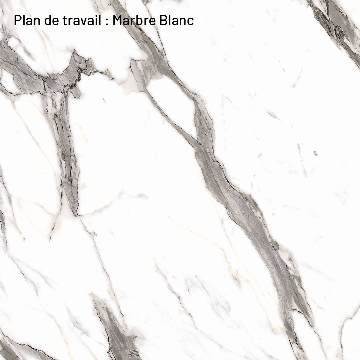 - 1 Plan de travail stratifié à redécouper L. 240,5 cm x P. 62 cm épaisseur 38 mm, 4 chants plaqués (livré avec un chant supplémentaire de 70 cm pour les découpes) - Marbre blanc (Plan de travail 137GD020)