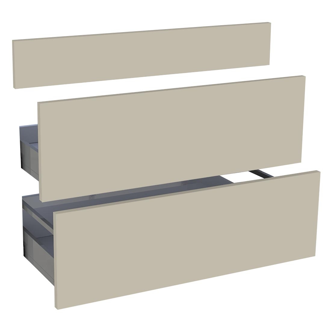 Kit façades 1 faux tiroir + 2 casseroliers 90 cm Beige Mat en panneau de particules surfacé mélaminé ép. 1,8 cm - Finition Beige mat - Chants ABS assortis - Intérieur assorti - Tiroir double paroi droite métallique anthracite - Quincaillerie d'assemblage fournie. (L. 89,7 - H. 71,7 - E. 1,8 cm) - A monter soi-même.