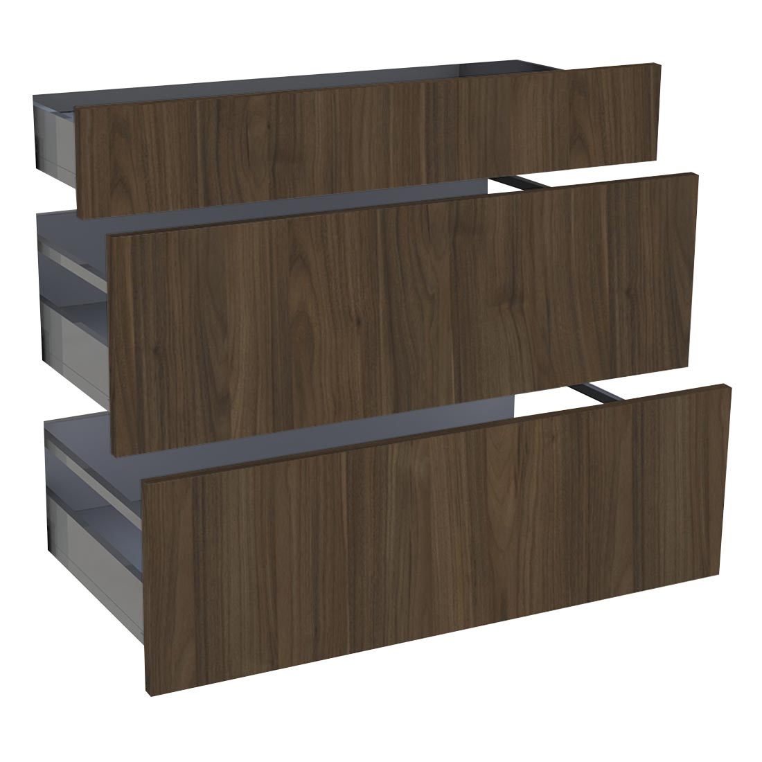 Kit façades 1 tiroir + 2 casseroliers 90 cm Noyer Foncé en panneau de particules surfacé mélaminé structuré décor imitation essence de bois chêne ép. 1,8 cm - Finition Bois structuré - Chants ABS assortis - Intérieur assorti - Tiroir double paroi droite métallique anthracite - Quincaillerie d'assemblage fournie. (L. 89,7 - H. 71,7 - E. 1,8 cm) - A monter soi-même.