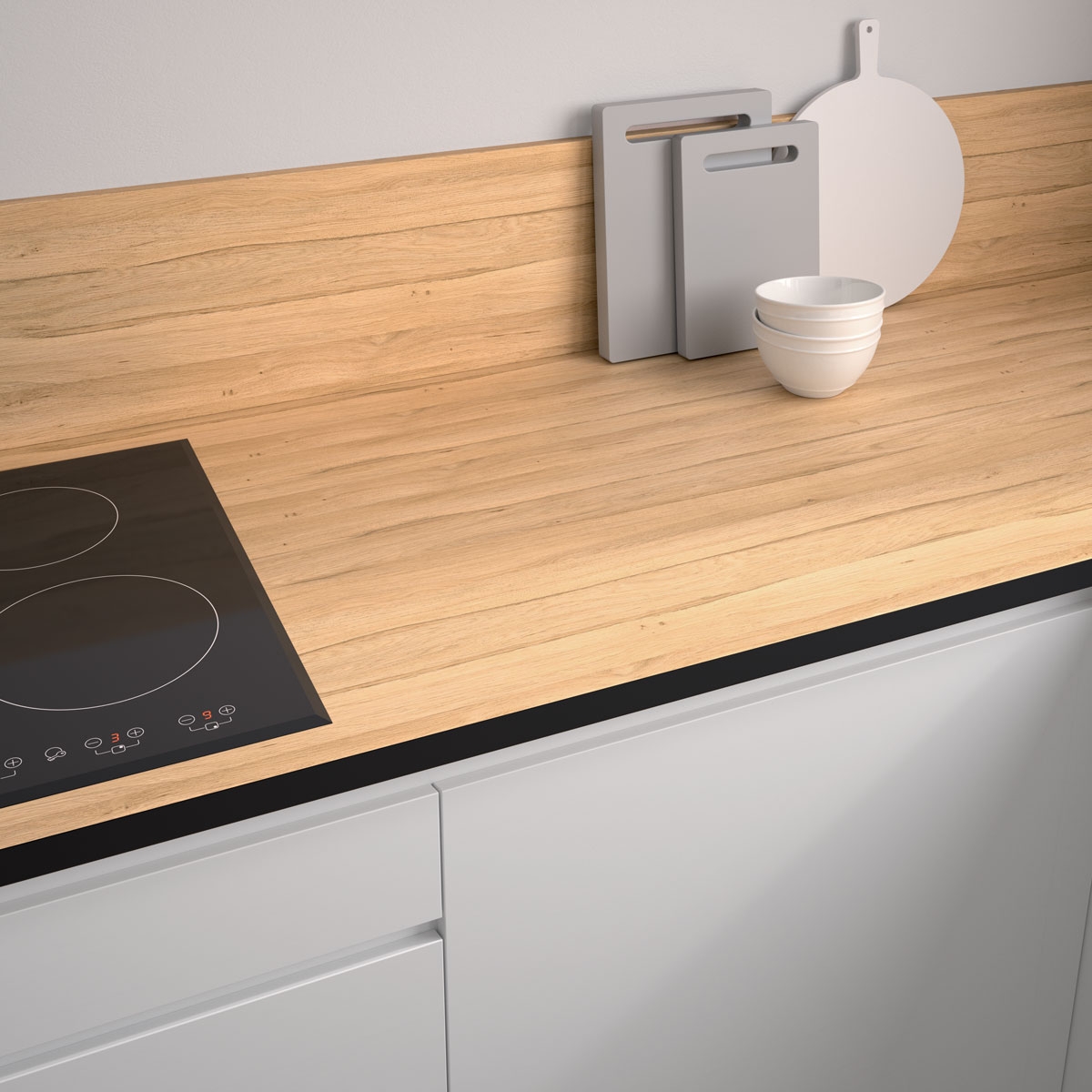 Plan de travail sur mesure stratifié Chêne Clair chants noirs